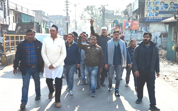 समाचार सच, हल्द्वानी। सड़क चौड़ीकरण के लिए किए जा रहे ध्वस्तीकरण में प्रभावित व्यापारी कल 16 जनवरी से दिन में 1 बजे तक अपने प्रतिष्ठान बंद रखेंगे और धरना प्रदर्शन कर उक्त ध्वस्तीकरण अभियान का विरोध करेंगे। उक्त निर्णय संयुक्त व्यापार संघर्ष समिति द्वारा लिया गया है। जिसको लेकर आज समिति के लोगों ने बाजार में जुलूस निकाल कर सभी प्रभावित व्यापारियों से आहवान किया कि वें जब तक उनकी मांगे पूरी न होने तक अपने प्रतिष्ठान दिन में 1 बजे तक बंद रखकर प्रदर्शन करें।