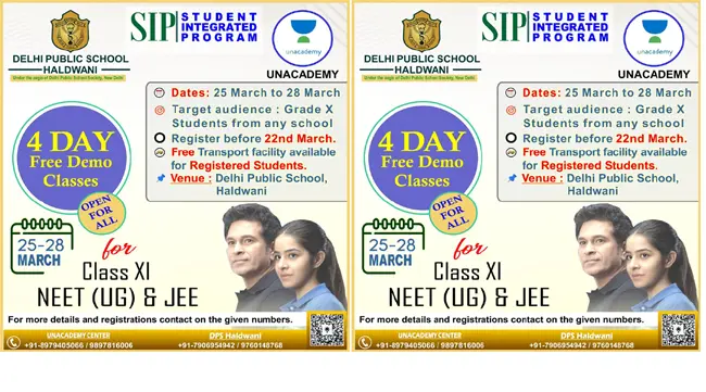 समाचार सच, हल्द्वानी। कक्षा 10 की बोर्ड परीक्षाएं समाप्त होते ही दिल्ली पब्लिक स्कूल (DPS) हल्द्वानी ने उन छात्रों के लिए शानदार अवसर प्रदान किया है, जो नीट (NEET UG) और जेईई (JEE) जैसी प्रतियोगी परीक्षाओं की तैयारी कर रहे…