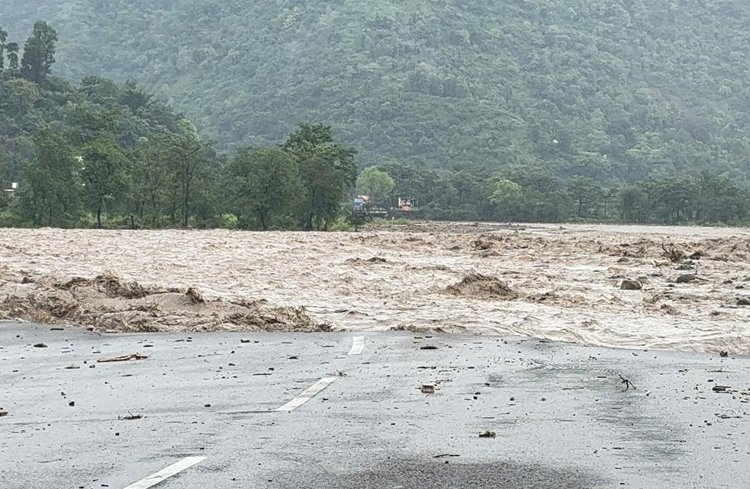 सोंग नदी ने बदला रास्ता. सड़क बह गई