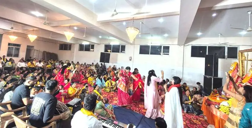 कार्यक्रम के दौरान भजन कलाकारों ने एक से बढ़कर एक भजनों की प्रस्तुति देकर पूरे वातावरण को भक्तिमय बना दिया। देर रात तक चले इस आयोजन में श्रद्धालु माँ के जयकारों के साथ भक्ति रस में डूबे नजर आए। वहीं समिति की महिलाओं ने पूरे उत्साह और उमंग के साथ झूम-झूमकर माँ भगवती की आराधना की। भक्तिमय गीतों और ढोलक की थाप पर महिलाएं भाव-विभोर होकर नृत्य करती रहीं, जिससे पूरा परिसर देवीमय हो उठा। वहीं कृष्ण-राधा की झांकी ने भी कार्यक्रम में चार चांद लगा दिए।