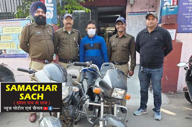 समाचार सच, हल्द्वानी। हल्द्वानी में बनभूलपुरा पुलिस ने मोटरसाइकिल चोरी के मामले का खुलासा करते हुए एक शातिर चोर को गिरफ्तार कर दो बाइकें बरामद करने में बड़ी सफलता हासिल की है। यह कार्रवाई एसएसपी नैनीताल डॉ. मंजुनाथ टीसी के निर्देश पर गठित विशेष टीम ने की।