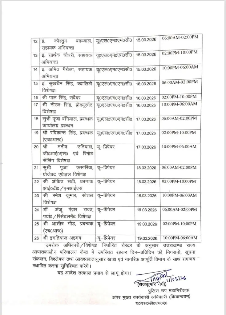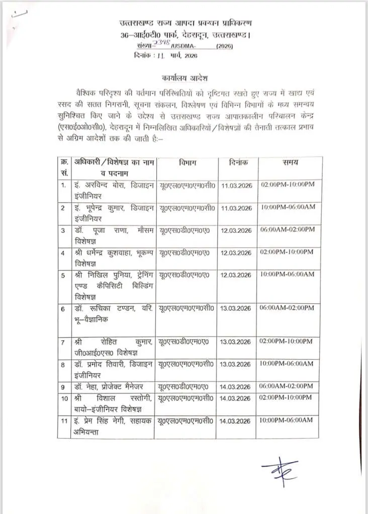 राज्य सरकार की ओर से जारी आदेश के मुताबिक, तैनात अधिकारी प्रदेश में खाद्य एवं आवश्यक वस्तुओं की उपलब्धता, आपूर्ति और वितरण प्रणाली की नियमित समीक्षा करेंगे। साथ ही खाद्य एवं रसद से जुड़ी सूचनाओं का लगातार संकलन और विश्लेषण किया जाएगा, ताकि विभिन्न विभागों के बीच बेहतर समन्वय बना रहे।