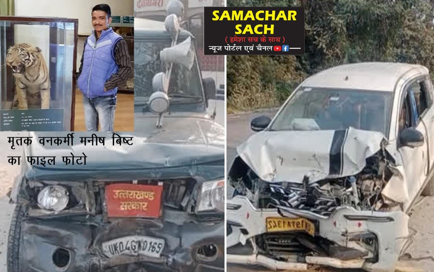 समाचार सच, रामनगर। नेशनल हाईवे-309 पर पिरूमदारा के पास आज तड़के एक दर्दनाक सड़क हादसा हो गया। वन विभाग की बोलेरो और अर्टिगा कार के बीच जबरदस्त आमने-सामने की टक्कर में 35 वर्षीय वनकर्मी मनीष बिष्ट की मौके पर ही मौत हो गई। हादसा सुबह करीब 3 बजे हुआ।