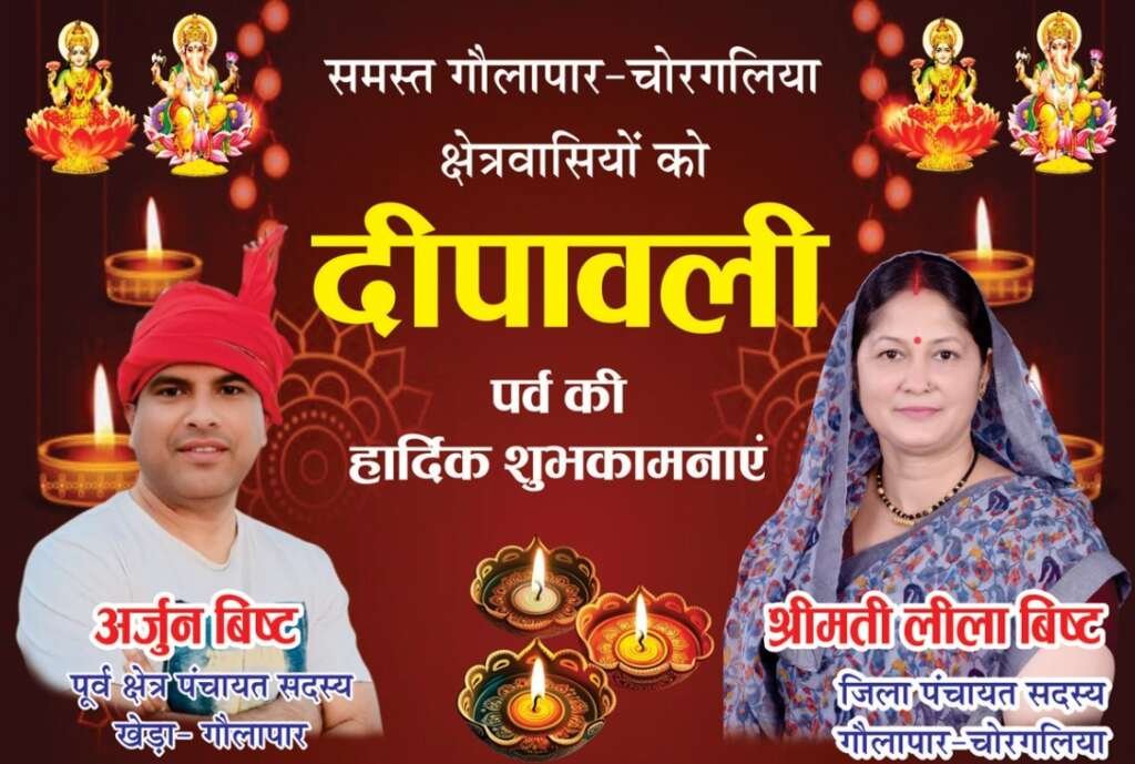 समाचार सच, हल्द्वानी। गौलापार–चोरगलिया क्षेत्र की जिला पंचायत सदस्य श्रीमती लीला बिष्ट एवं गौलापार खेड़ा के पूर्व क्षेत्र पंचायत सदस्य अर्जुन सिंह बिष्ट ने क्षेत्रवासियों व प्रदेश की जनता को दीपावली की हार्दिक शुभकामनाएं दी हैं। श्रीमती लीला बिष्ट ने…