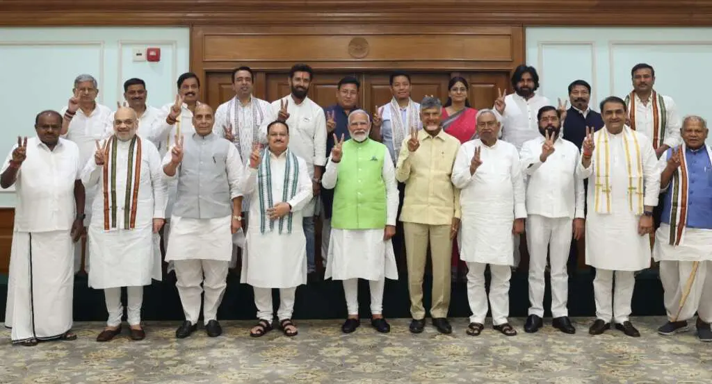 समाचार सच, नई दिल्ली (एजेन्सी)। लोकसभा चुनावों के नतीजों में एनडीए गठबंधन को बहुमत मिला है। प्रधानमंत्री आवास पर बुधवार को हुई एनडीए की बैठक में सभी दलों ने सर्वसम्मति से नरेंद्र मोदी को अपना नेता चुन लिया है। एनडीए…