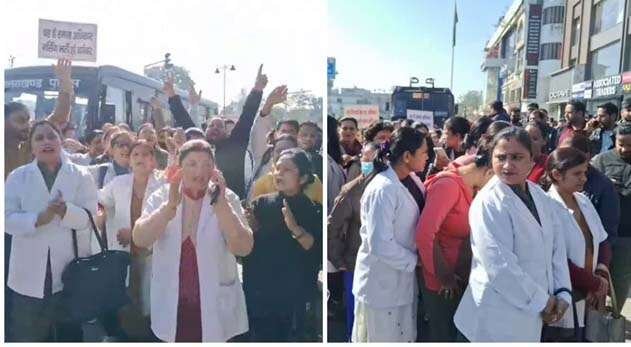 हंगामे के बीच एक महिला पुलिसकर्मी द्वारा प्रदर्शन में शामिल एक नर्सिंग छात्रा को थप्पड़ मारने का वीडियो सोशल मीडिया पर तेजी से वायरल हो गया, जिसके बाद दोनों के बीच हाथापाई की स्थिति बन गई।