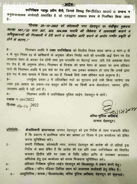 इसी दौरान पुलिस प्रशासन को आड़े हाथ लेते हुए कांग्रेस ने कहा की लगातार युवाओं के साथ बर्बरता हो रही है और पुलिस हत्यारी बनी हुई है। वहीं मामले में कांग्रेसियों के धरने और बवाल के बाद सीएम धामी ने मामले में सख्त कार्रवाई के निर्देश दिए है। कांग्रेस पार्टी के विरोध प्रदर्शन के उपरांत पुलिस प्रशासन ने चौकी इंचार्ज लखीबाग को सस्पेंड किया गया। वहीं कांग्रेस ने दोषियों पर 302 के तहत कार्रवाई करने की मांग की है।